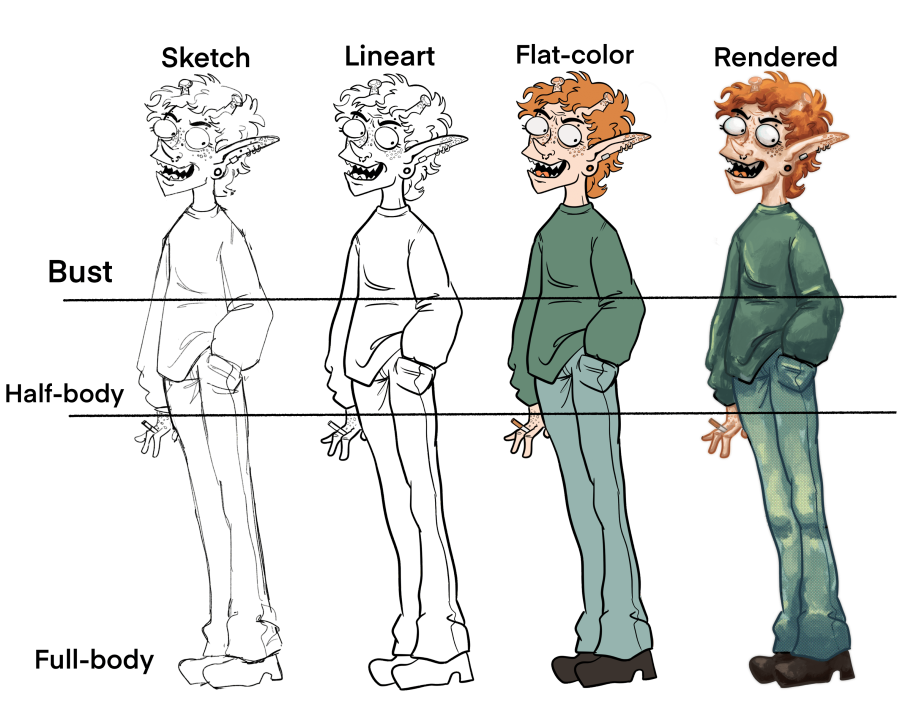 | Extra Characters | Shape/Pattern Background | Simple Scene | Reference Sheet |